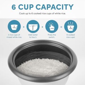 - Capacity: 3 cups uncooked rice (yields 6 cups cooked)