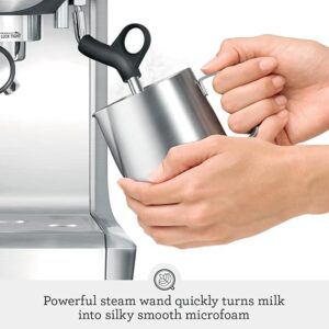 In addition to making exceptional espresso, the Breville BES870XL Barista Express also excels at frothing milk for cappuccinos, lattes, and other milk-based beverages. The machine comes equipped with a powerful steam wand that allows you to create rich, creamy foam for your drinks. This steaming wand has a high-performance boiler that produces steam at the ideal temperature, allowing you to froth milk to your desired texture and consistency.