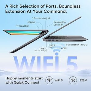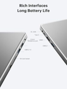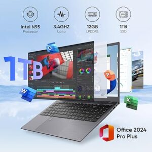 The Intel N95 Quad-Core processor combined with 12GB LPDDR5 RAM ensures fast and efficient performance for office applications, online meetings, and multimedia tasks. The 1TB SSD provides ultra-fast read and write speeds, reducing loading times and improving productivity.