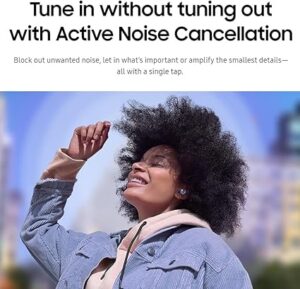 - One of the standout features of the Samsung Galaxy Buds Pro is Active Noise Cancellation (ANC). This technology blocks out ambient noise to create an immersive listening environment. Whether you’re in a crowded place, on a noisy commute, or at the office, ANC allows you to enjoy music or take calls without distraction.